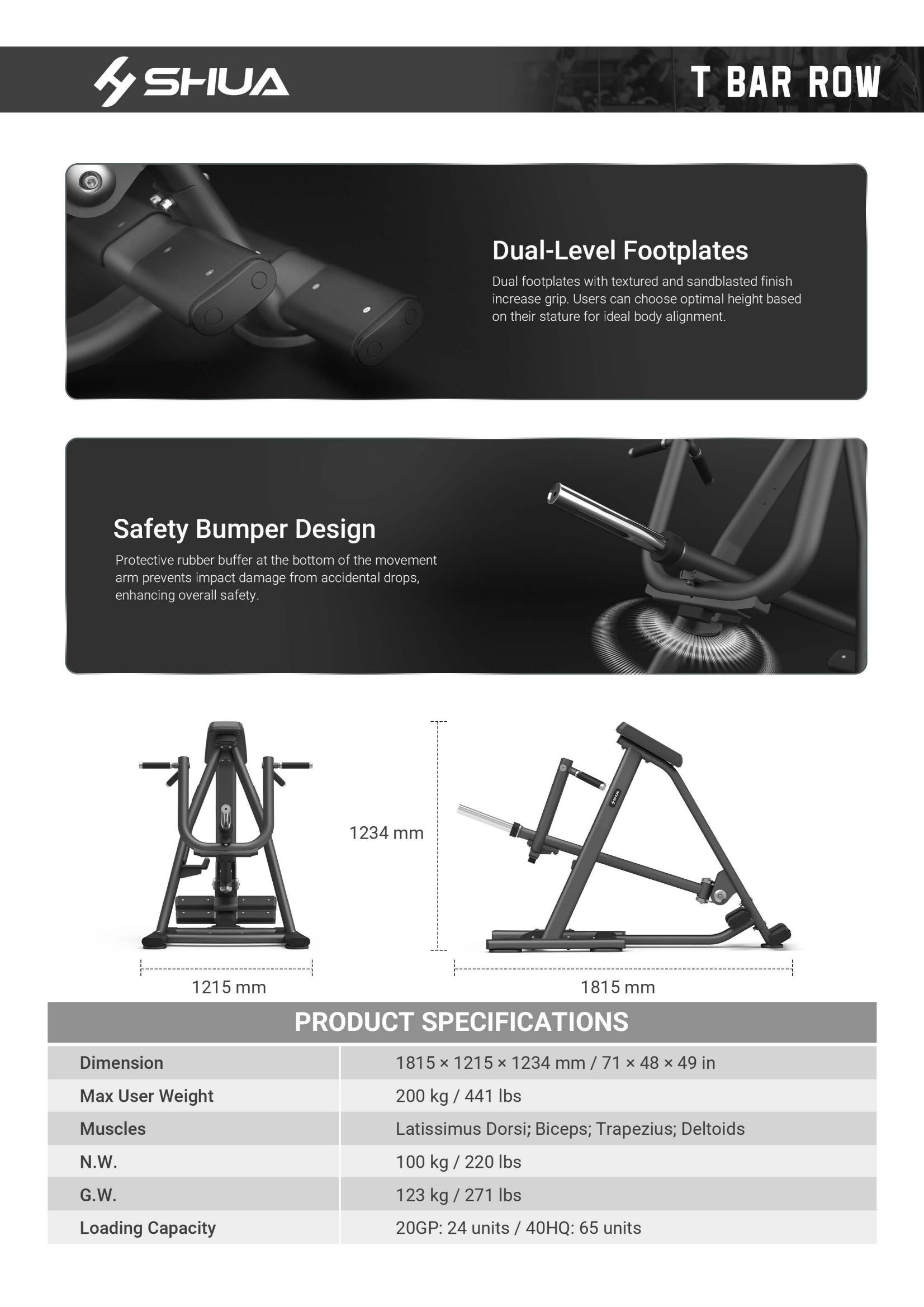 ทีบาร์โรว์ SH-G6921 เน้นที่หลังด้วยตัวเลือกจับคู่ รองรับหน้าอกตามหลักสรีรศาสตร์ และที่วางเท้าสองชั้นเพื่อการวางตำแหน่งที่มั่นคง กันชนนิรภัยช่วยปกป้องขณะยกน้ำหนักหนัก ทำให้ทุกการยกมีความปลอดภัยและมีประสิทธิภาพ