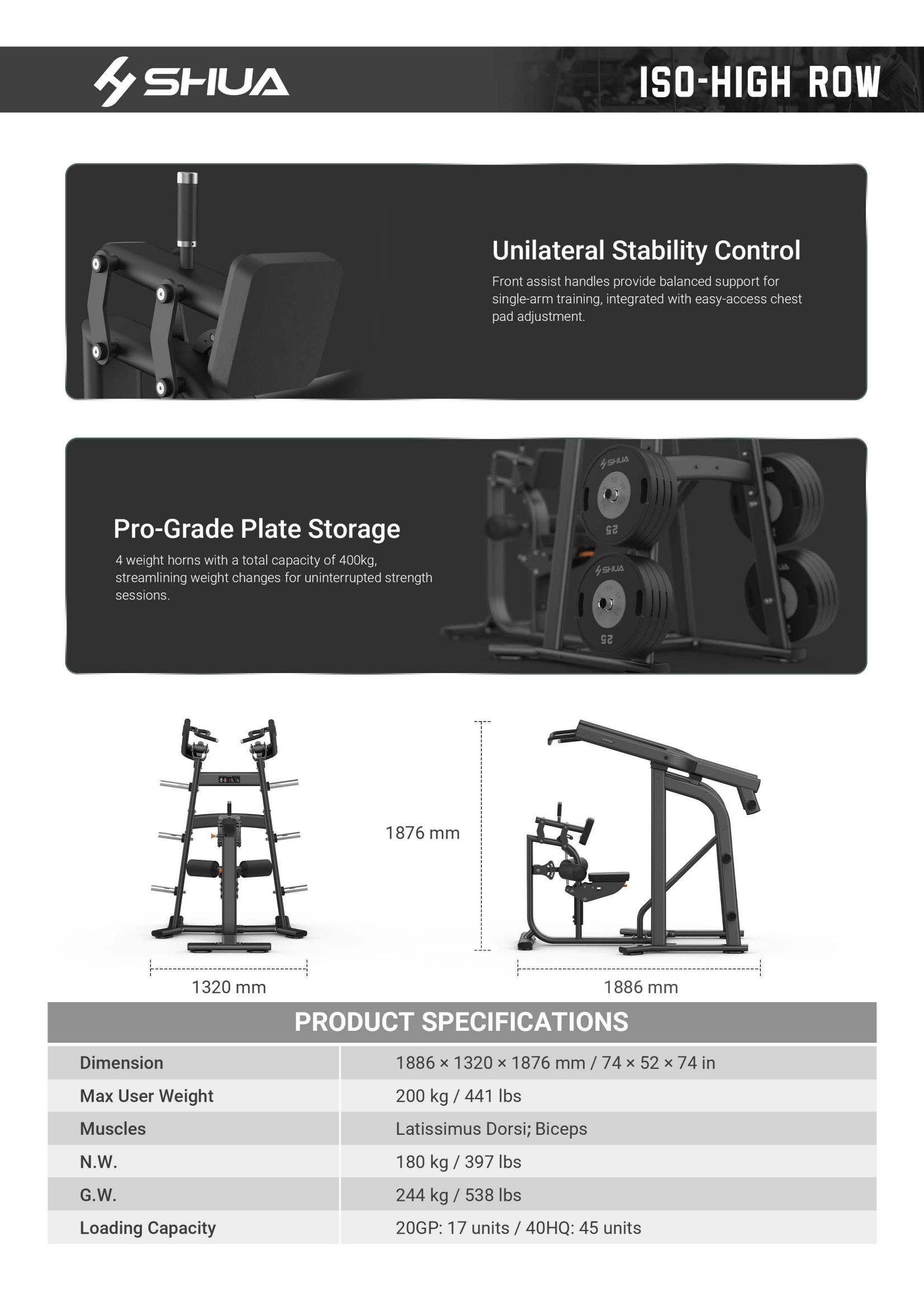SH-G6922 ISO-High Row มอบการฝึกกล้ามเนื้อหลังอย่างตรงจุดด้วยด้ามจับคู่และการตั้งค่าที่ปรับได้อย่างเต็มที่เพื่อความกระชับพอดี ด้ามจับช่วยพยุงด้านหน้าช่วยให้ควบคุมได้แม่นยำขณะใช้แขนเดียว พร้อมที่เก็บแผ่นน้ำหนักในตัว ช่วยให้การออกกำลังกายราบรื่นและมีประสิทธิภาพ